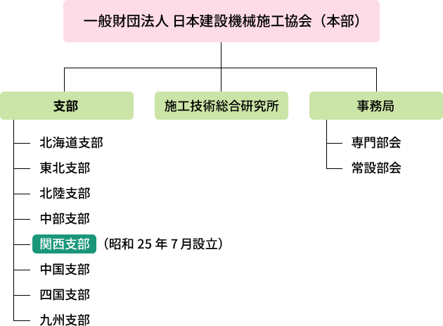 支部は各業界の団体会員で構成されており、関西地区における建設事業の機械化促進と発展に寄与するため、各部会活動を中心に活発な活動を行っています。